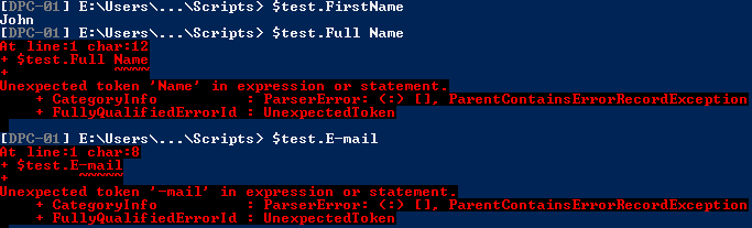 Ask anyone who have worked with PowerShell for a while, and they will all tell you to try to avoid spaces and special characters in variable names and property names of custom objects or hash tables. Even though it’s possible to use them, there is a reason why it’s not recommended, but unfortunately you might come up in a situation where such things are out of your control, and you just have to deal with it.